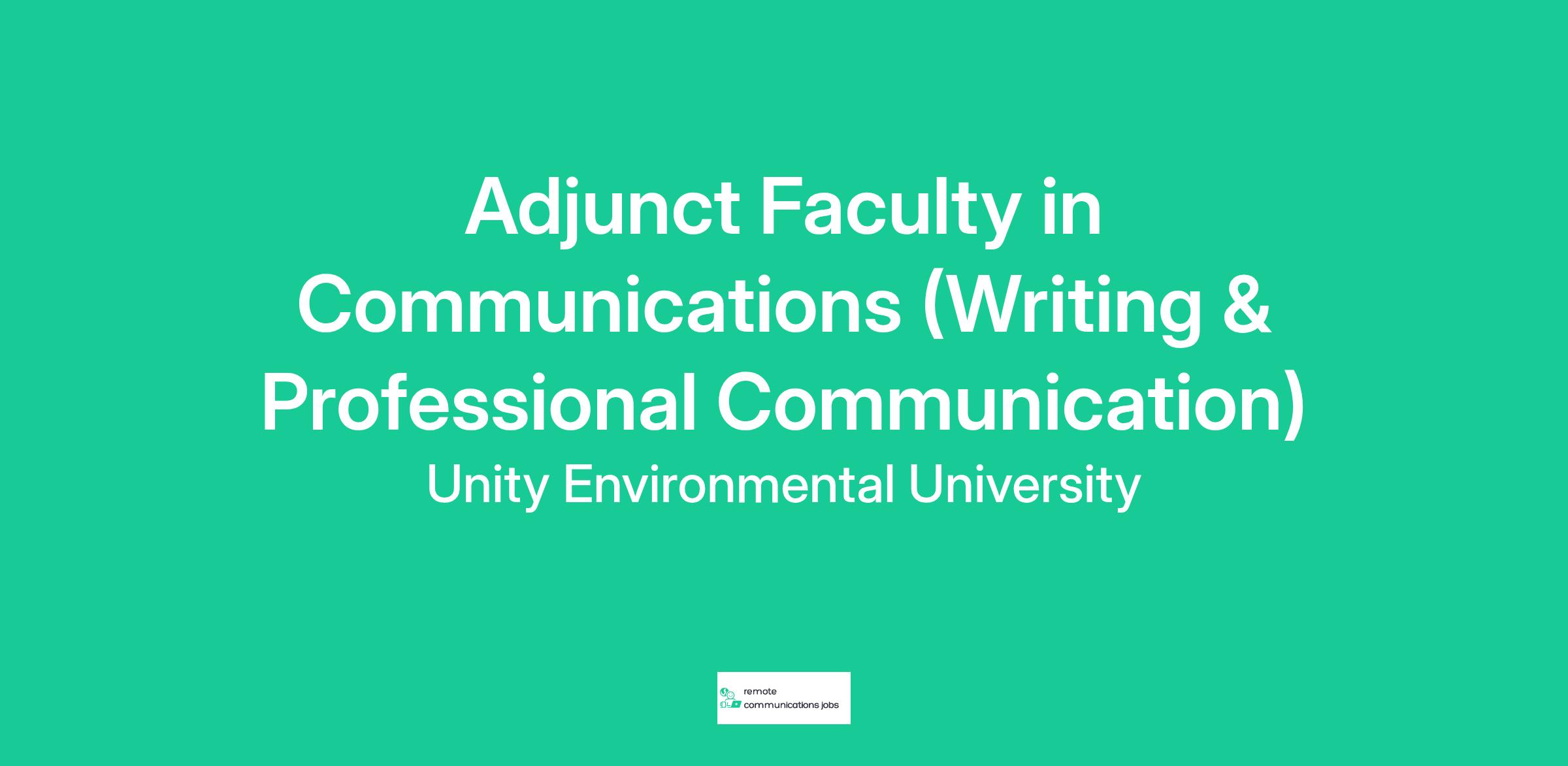 Unity Environmental University seeks experienced, student-centered adjunct faculty to teach foundational Communications courses within Career Edge, our innovative new business unit offering workforce-aligned, fully online Applied Bachelor of Science degree programs. These programs support working adult learners across five sustainability-connected majors: Psychology & Human Services, Entrepreneurship, Sustainable Business Management, Environmental Crime Investigation, and Culinary Innovation & Food Systems.