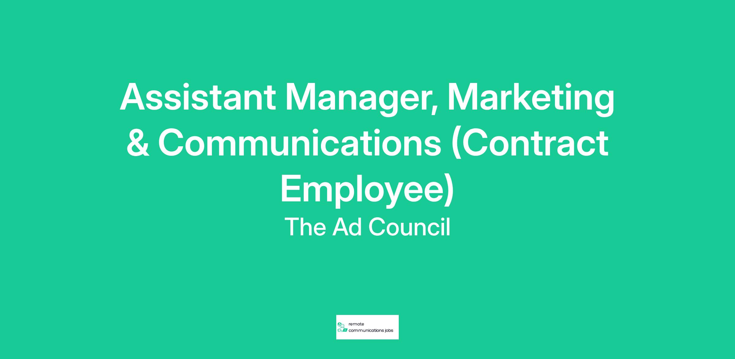 The Ad Council is looking for an Assistant Manager, Marketing & Communications (Contract Employee) who will play a key role in creating, crafting and driving the overarching communications strategies for the Ad Council’s social impact campaigns. This position will also focus on social media management for the Ad Council brand, including thought leadership opportunities and collaborations with brand partners.