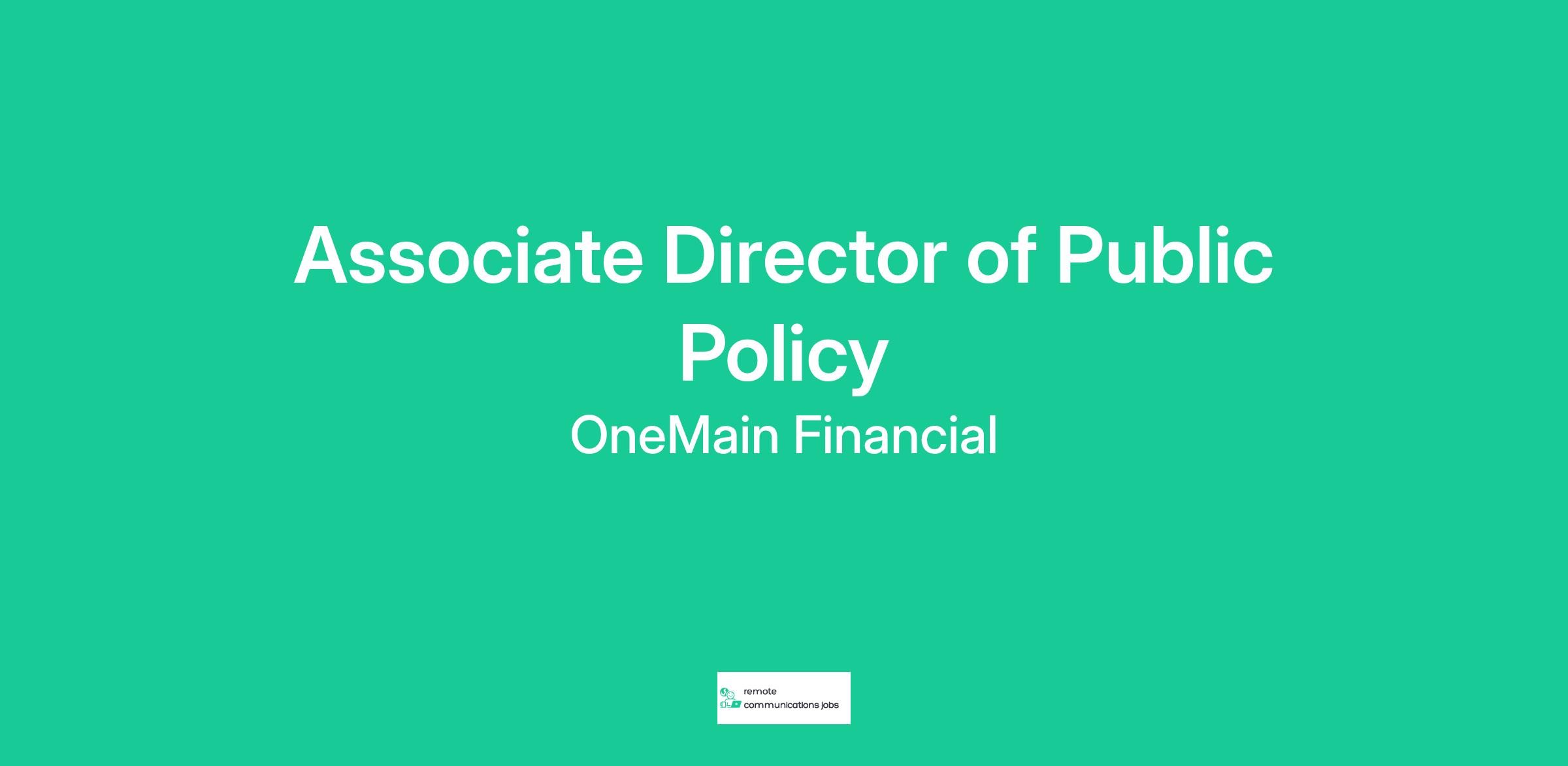 The Associate Director of Public Policy will help lead the company’s state legislative, regulatory, and public policy matters. The Associate Director is responsible for helping to develop and execute OneMain’s strategic approach to state and local government relations to support the organization’s mission across regions/territory. The Associate Director will also help in managing the Political Action Committee (PAC).