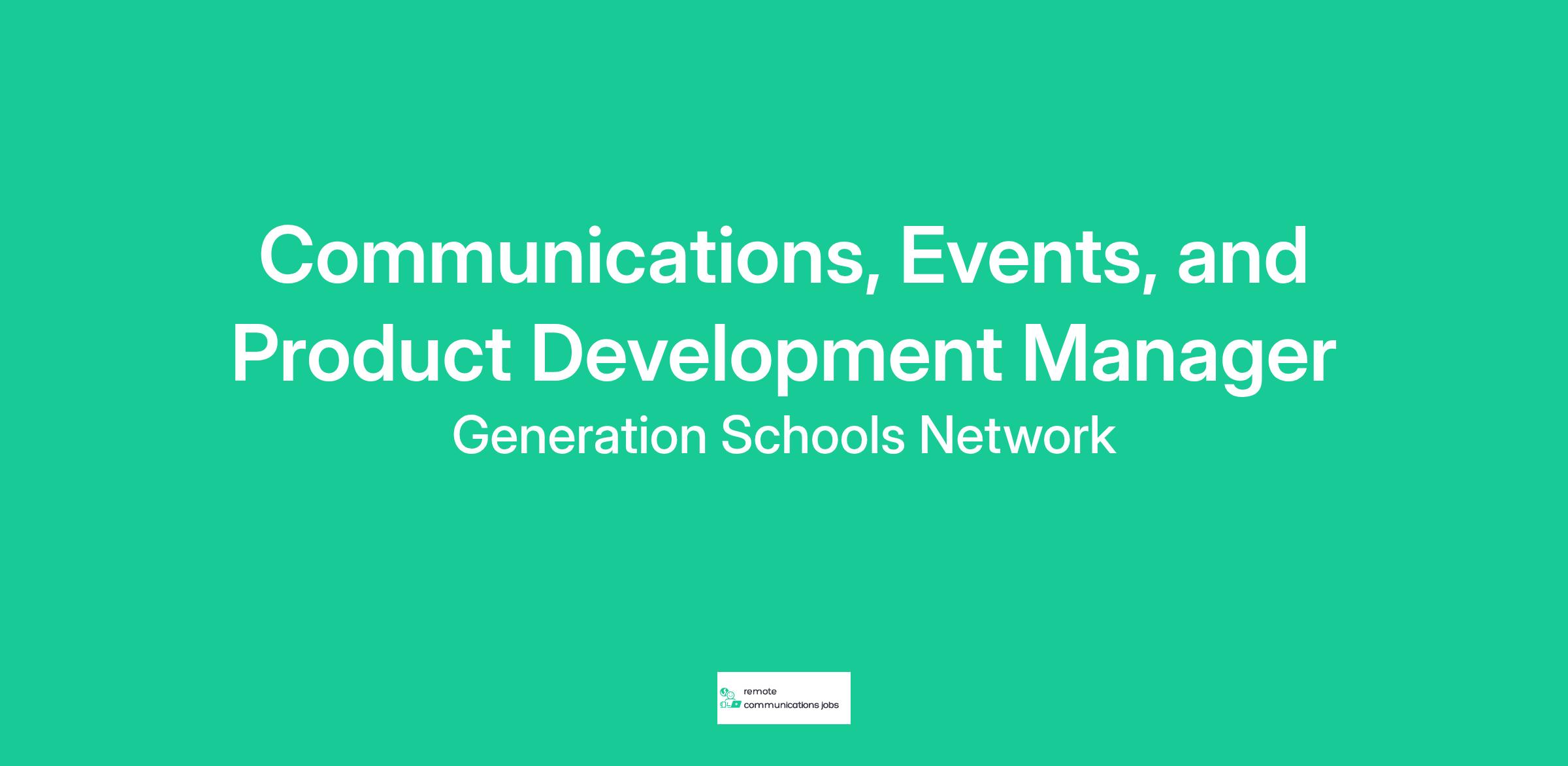 The Communications, Events, and Product Development Manager will play an essential and strategic role in supporting Generation Schools Network’s (GSN) efforts across our four areas of work to grow our voice and brand among local and national audiences. Additionally, this role is critical in providing regular resources, platform management, and logistical support to our committed team of educational leaders who lead crucial work in our partner schools and programs. This position is ideal for a creative, driven, self-directed, and organized individual who thrives in a dynamic, fast-paced, and collaborative environment and embodies GSN’s mission and values.
