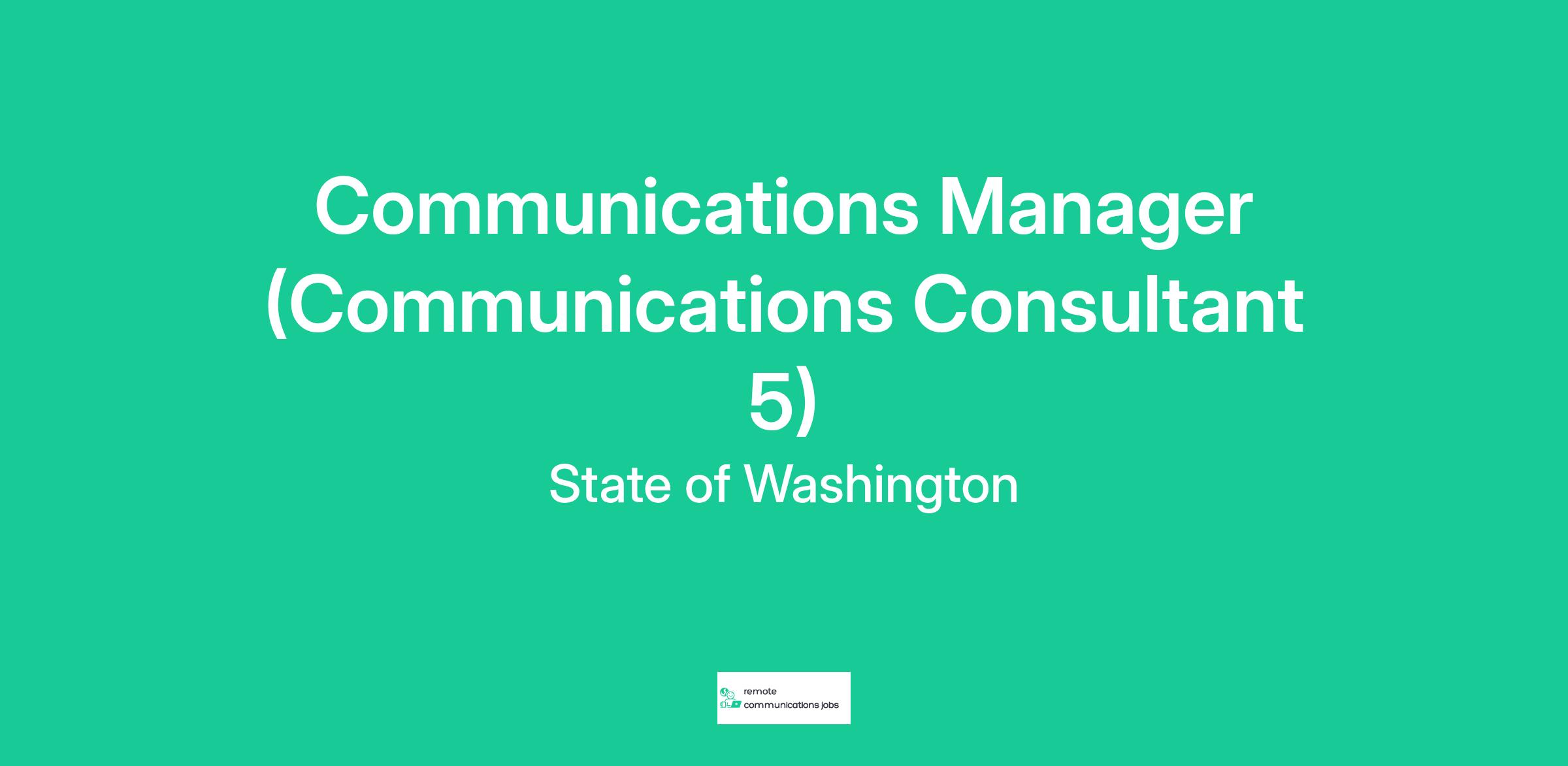 The Department of Ecology is hiring a Communications Manager (Communications Consultant 5) within the Spill Prevention, Preparedness, and Response program.