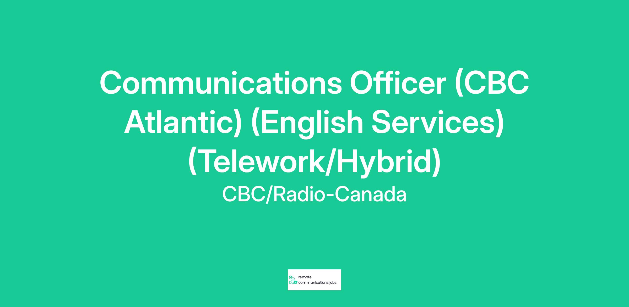 Communications Officer (CBC Atlantic) (English Services) (Telework/Hybrid)Status of Employment:
