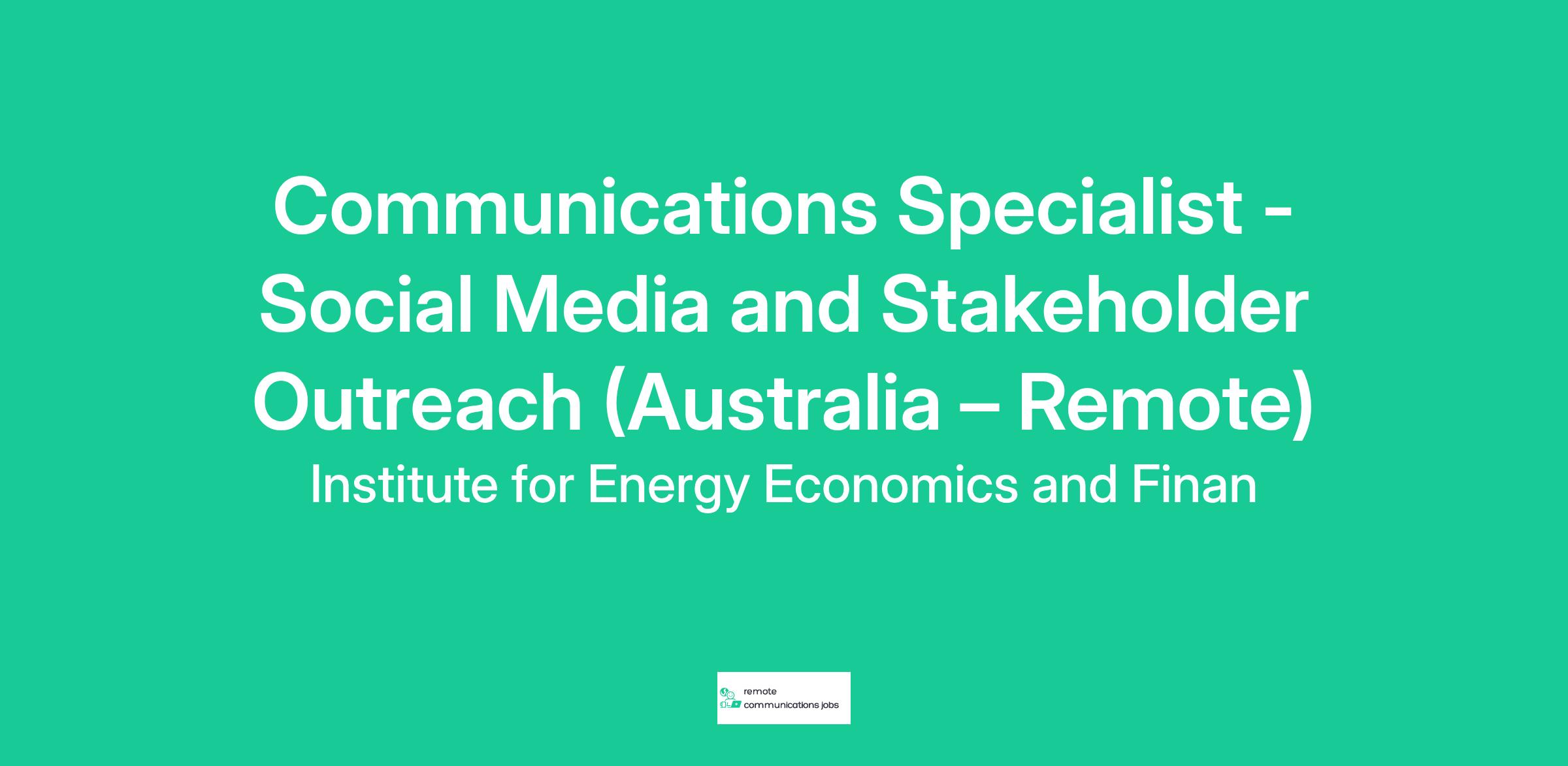 The Communications Specialist - Social Media and Stakeholder Outreach will work remotely and may be based anywhere in Australia. Some travel is . All global team members attend IEEFA’s annual conference and international team retreat. Quarterly in person team meetings alternate between Sydney and Melbourne.