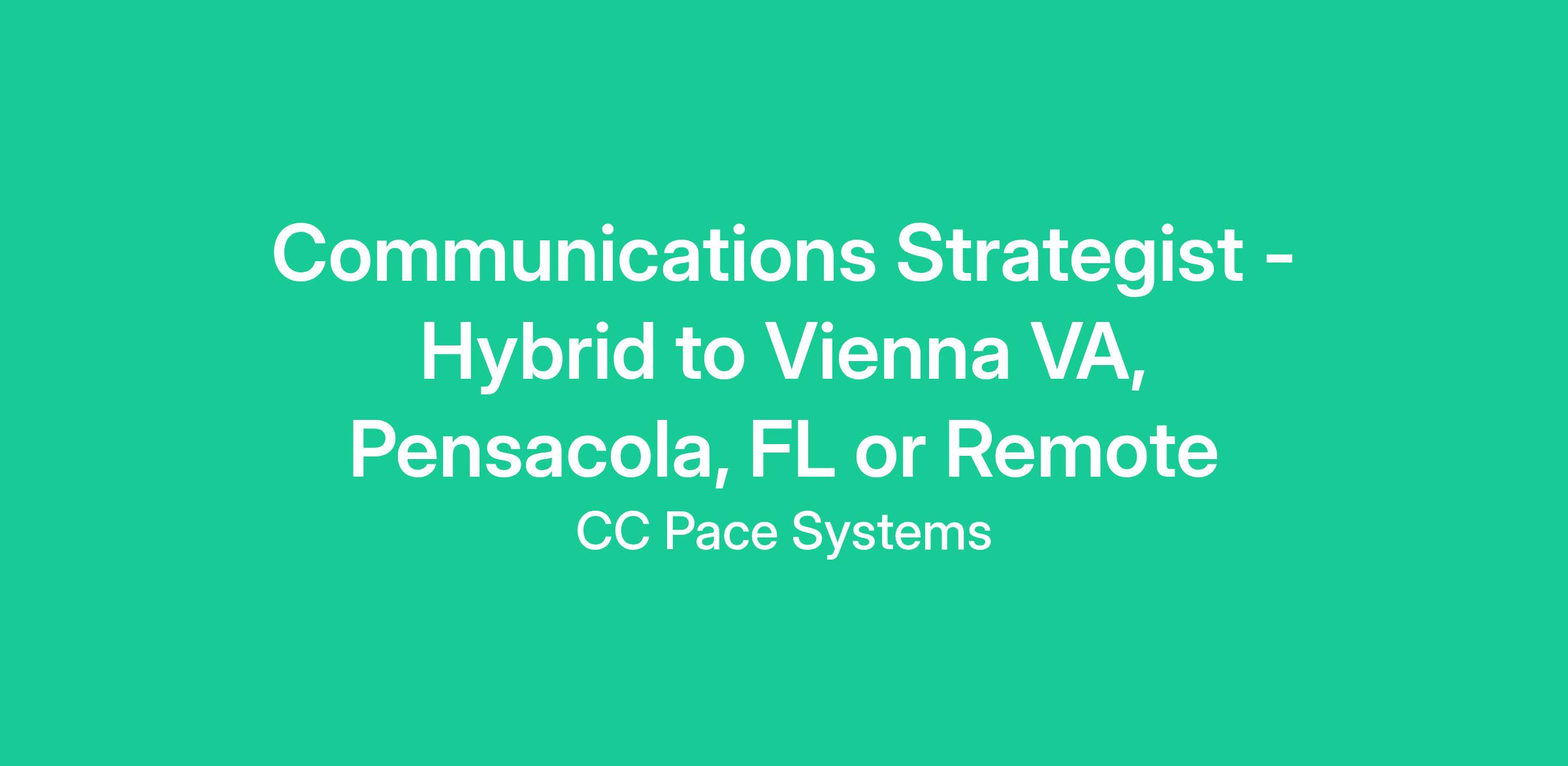 Open to hybrid in Vienna, VA or Pensacola, FL, or remote.