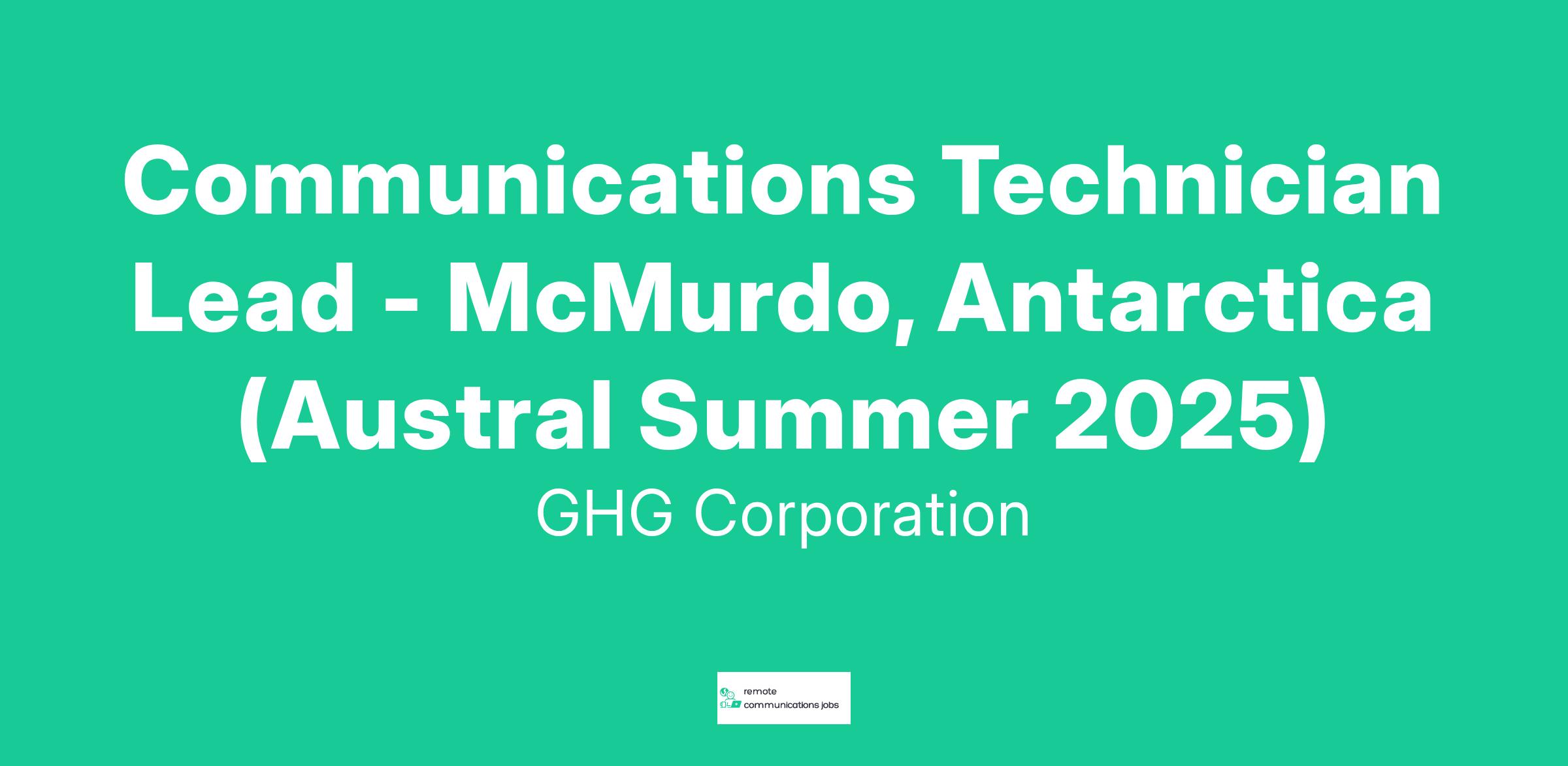 Communications Technician Lead - McMurdo, Antarctica (Austral Summer 2025)
