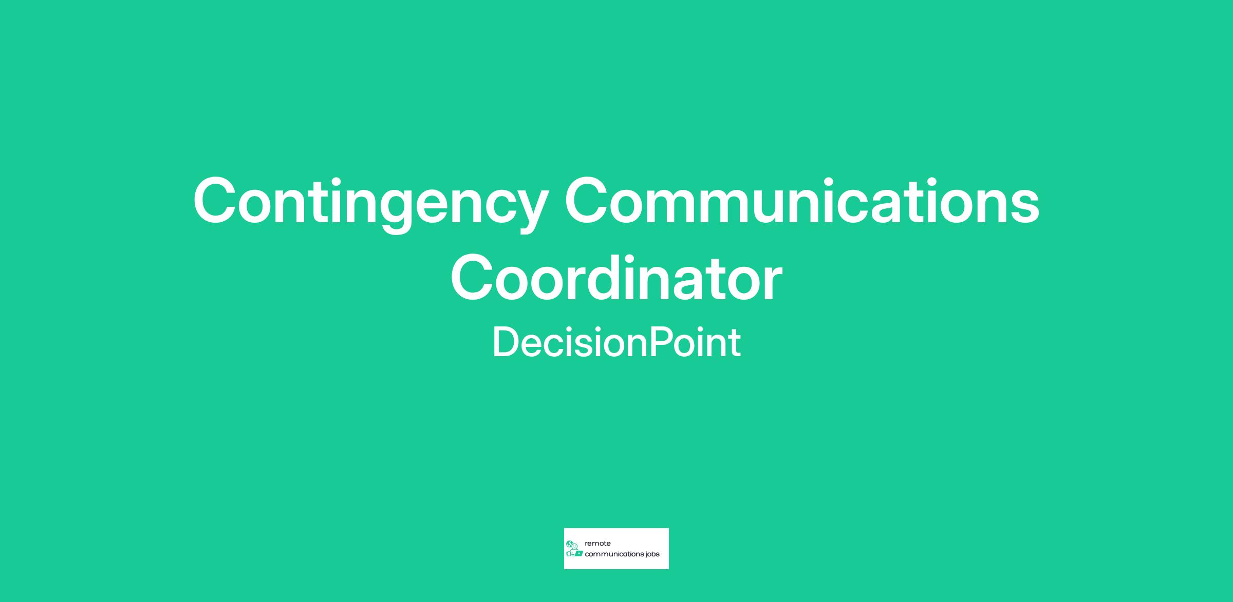 DecisionPoint seeks a Contingency Communications Coordinator to support the development, activation, and management of emergency communications during crises, outages, disasters, or mission-critical events in a large federal and DoD-aligned operating environment. This role ensures consistent, accurate, and rapid messaging across stakeholders and communication channels during high-pressure scenarios.