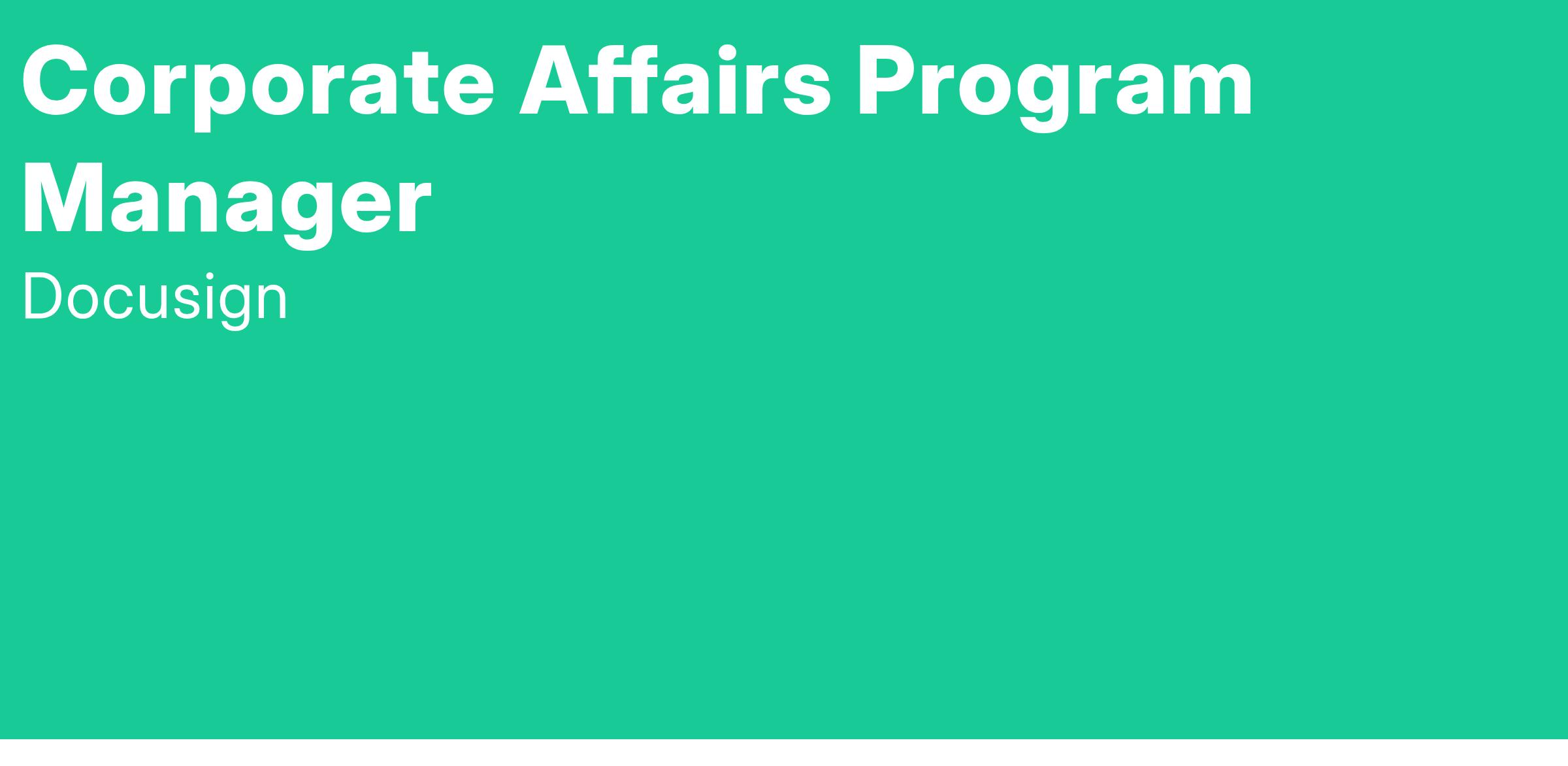 As the Program Manager for the Corporate Affairs Team, you will drive the delivery of our strategic initiatives, ensuring the scope, resources, stakeholders and critical partners are aligned through the entire lifecycle of a program. Working across the Corporate Affairs team, and with other functions as needed, this role will ensure success and value of critical projects across sustainability, social impact and government affairs. The role will play a critical role in driving projects such as Sustainability and ESG reporting process across the company, objectives and key results tracking, new software and program roll outs, process change work, as well as support special projects such as the Docusign for Nonprofits initiative, science-based targets plan implementation, government affairs policy program management and project management of the company’s Impact Report.