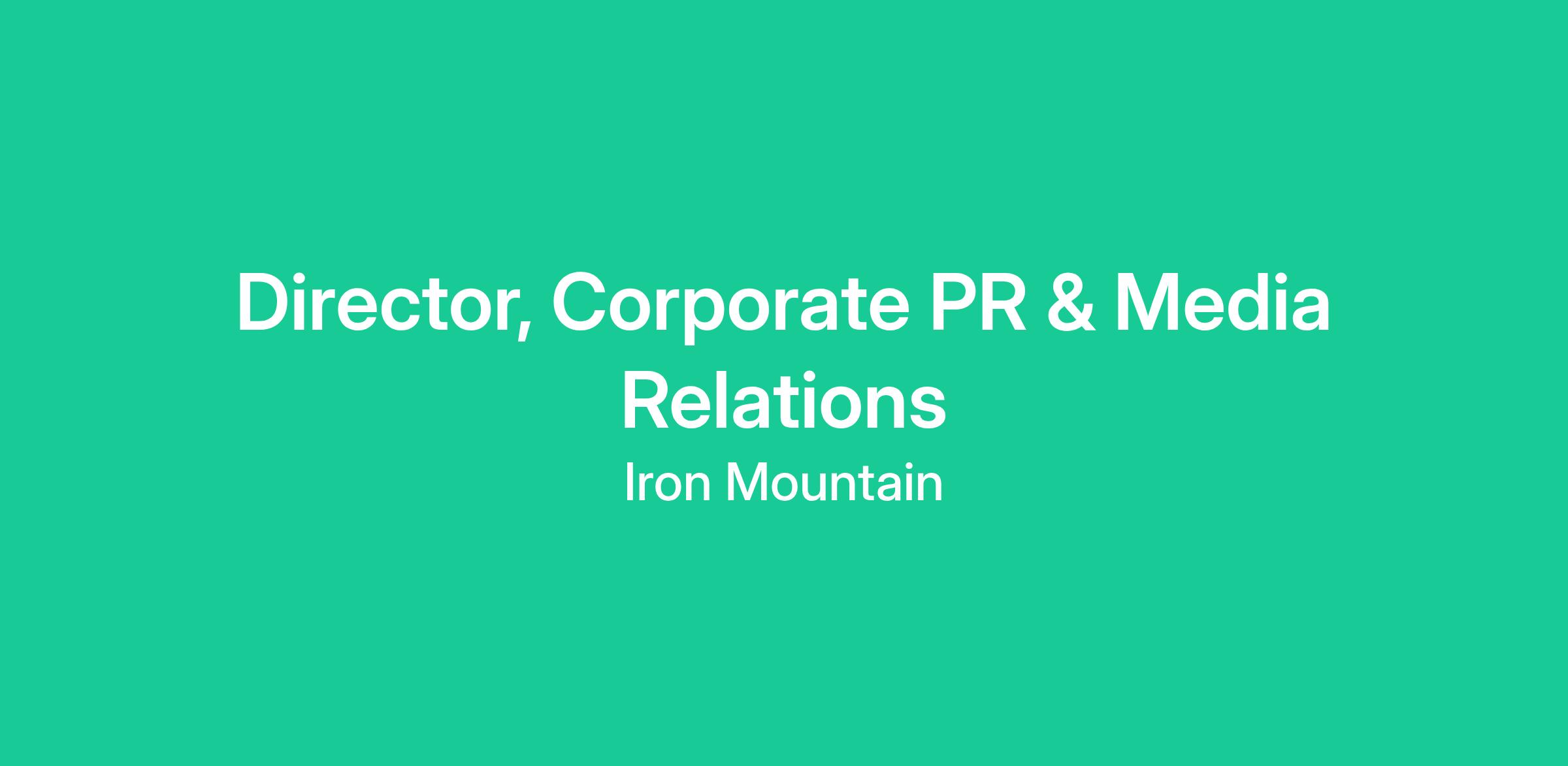 Iron Mountain is seeking a dynamic and experienced Director, Corporate PR & Media Relations to join our Corporate Communications team. In this role, you will be responsible for developing and executing a global corporate public relations and media strategy to protect and enhance Iron Mountain’s reputation as a trusted partner and employer of choice.