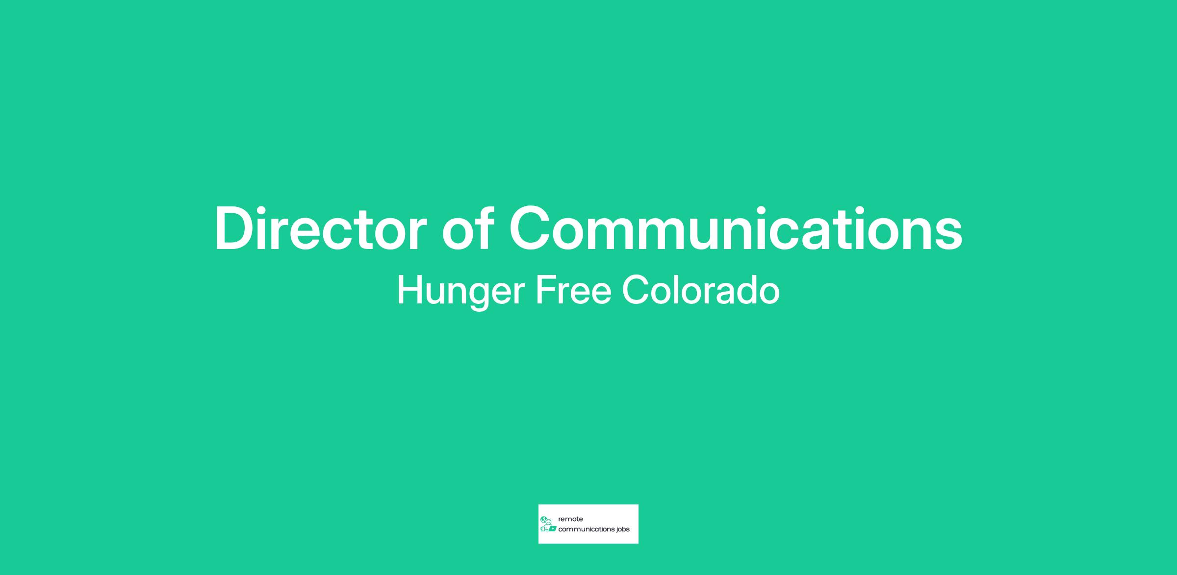 As a key member of the leadership team, the Director of Communications oversees all external communications for Hunger Free Colorado, with a focus on building public awareness, understanding and action behind the movement to end hunger and achieve food justice in Colorado. This includes educating donors, partners, grassroots community leaders and the general public about our work and how they can get involved.