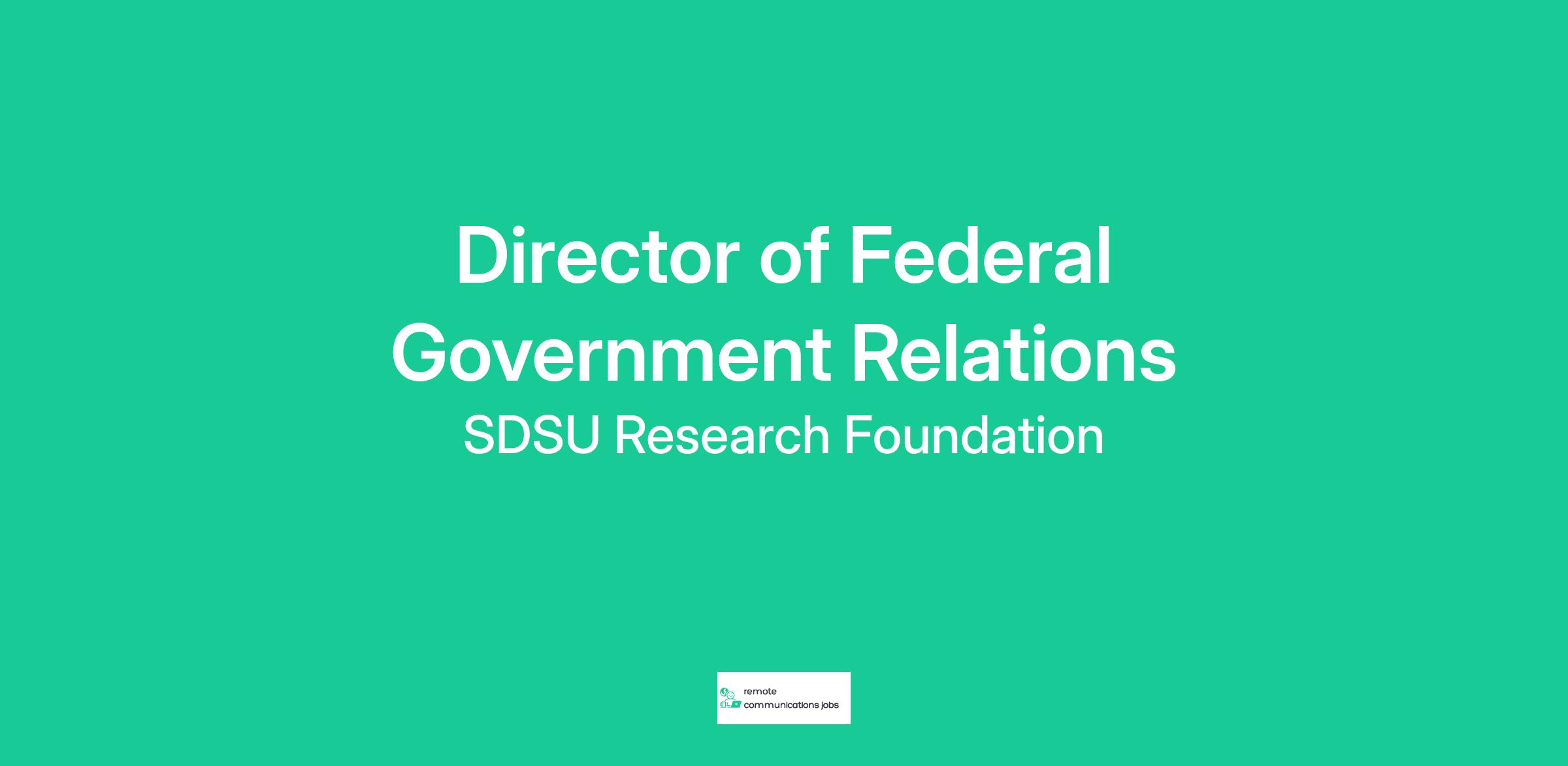 The Director of Federal Government Relations is a high-profile position, working across the entire campus on issues relevant to research and scholarship, with a small support role for student access and financial aid. The DFGR should reside in a commutable distance from Washington DC, and be available to travel, as-needed, to national locations relevant to the priorities of SDSU, including California or other sites, meetings, or conferences deemed necessary.