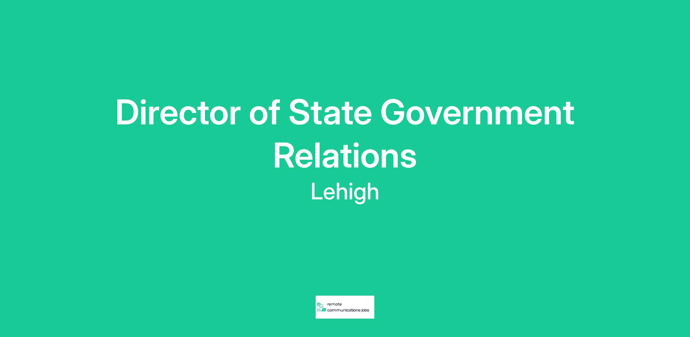 Lehigh University seeks an experienced Director of State Government Relations to manage our legislative advocacy and stakeholder relationships at state and federal levels.