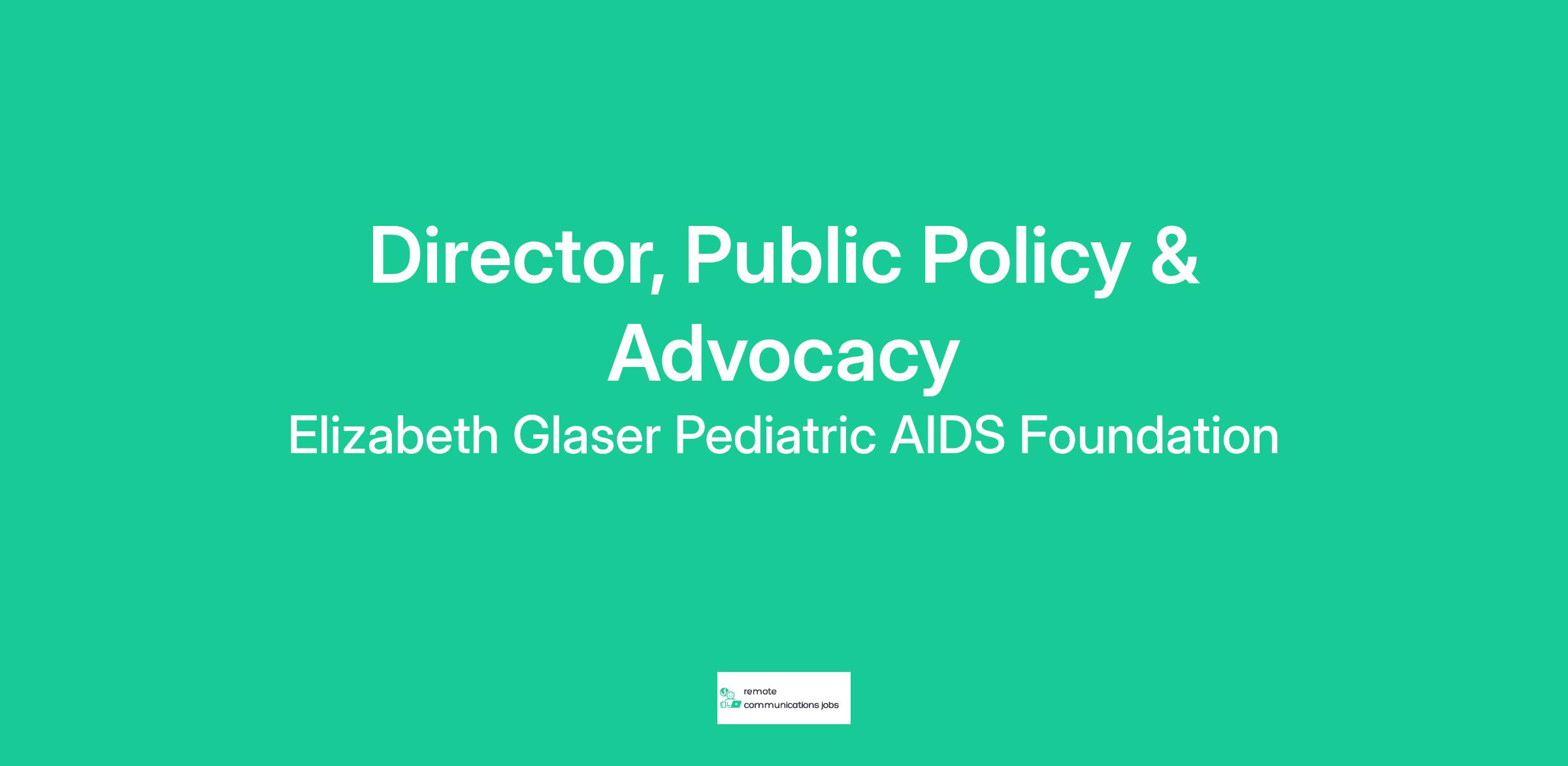 The Director of Public Policy & Advocacy will provide strategic leadership to elevate and expand the Foundation’s national policy and advocacy presence, serving as a senior advocate and thought leader in advancing the Foundation’s mission. This role will drive high-level engagement with U.S. policymakers and stakeholders to champion key priorities—including the elimination of pediatric HIV and AIDS, addressing childhood tuberculosis, sustaining a robust U.S. global HIV response, and advancing other core elements of EGPAF’s strategic agenda.