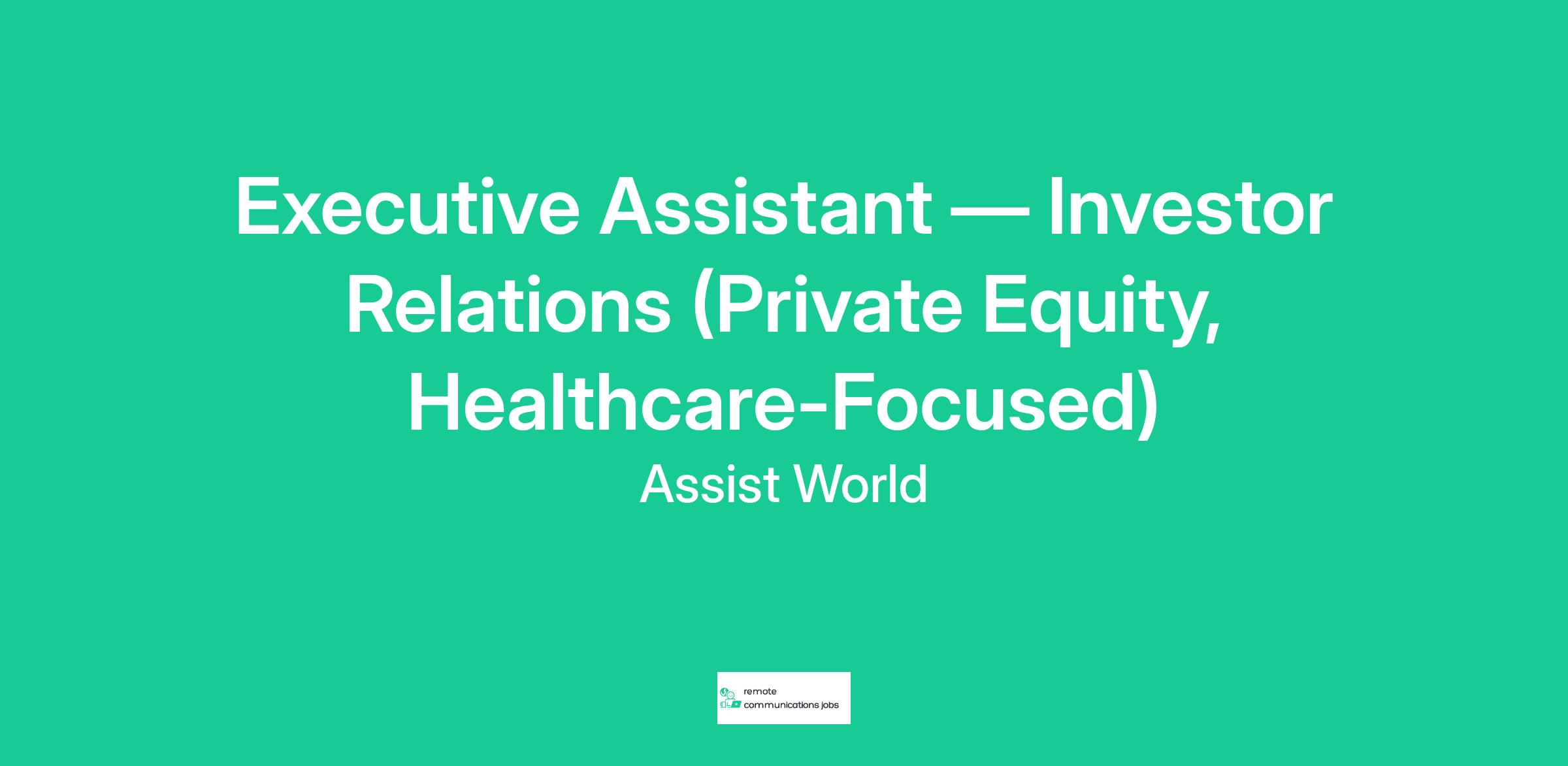 About the Client (Industry) A New York–based private equity firm focused on healthcare. The team operates in a fast-paced, high-touch environment and is currently in an active fundraising cycle with a heavy cadence of LP/investor meetings. You will support the Head of Investor Relations (VP) and collaborate with two team members (Analyst & Associate), as well as in-house executive assistants and external investors/LPs.