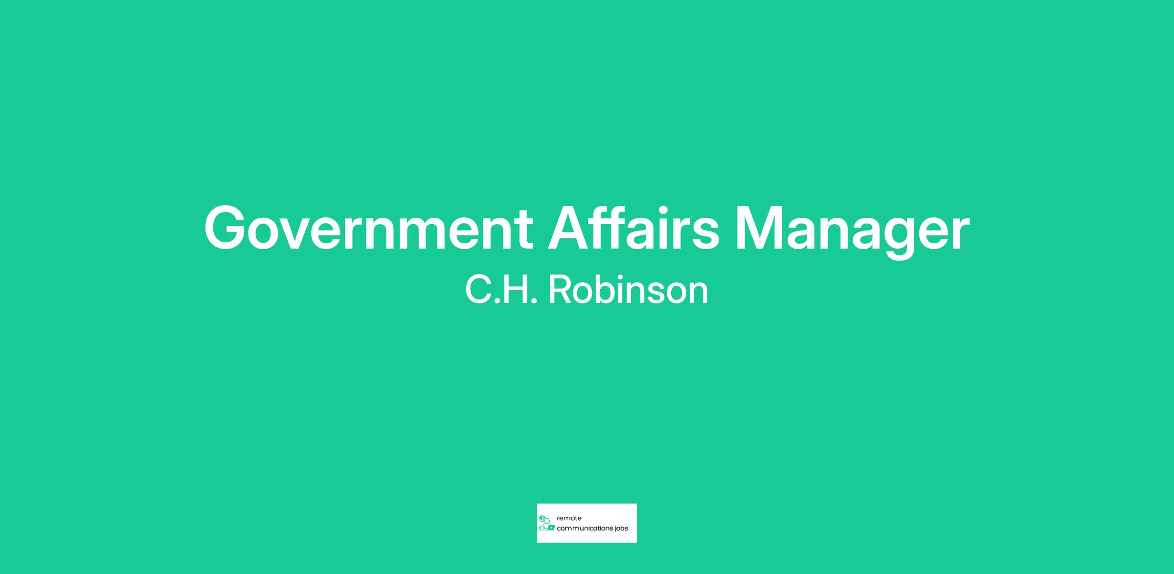 C.H Robinson is seeking a Government Affairs Manager that requires a strategic and collaborative, subject matter expert to further enable our transformation and support and execute CH Robinson’s public policy and advocacy initiatives at the federal and state levels, based in Washington, DC. This role will help execute the company’s legislative and regulatory strategy, build relationships with key policymakers, and represent CH Robinson’s interests in the public policy arena. This is a high-impact role for a seasoned government affairs professional who thrives in dynamic policy environments and is passionate about advancing business goals through thoughtful engagement and advocacy.