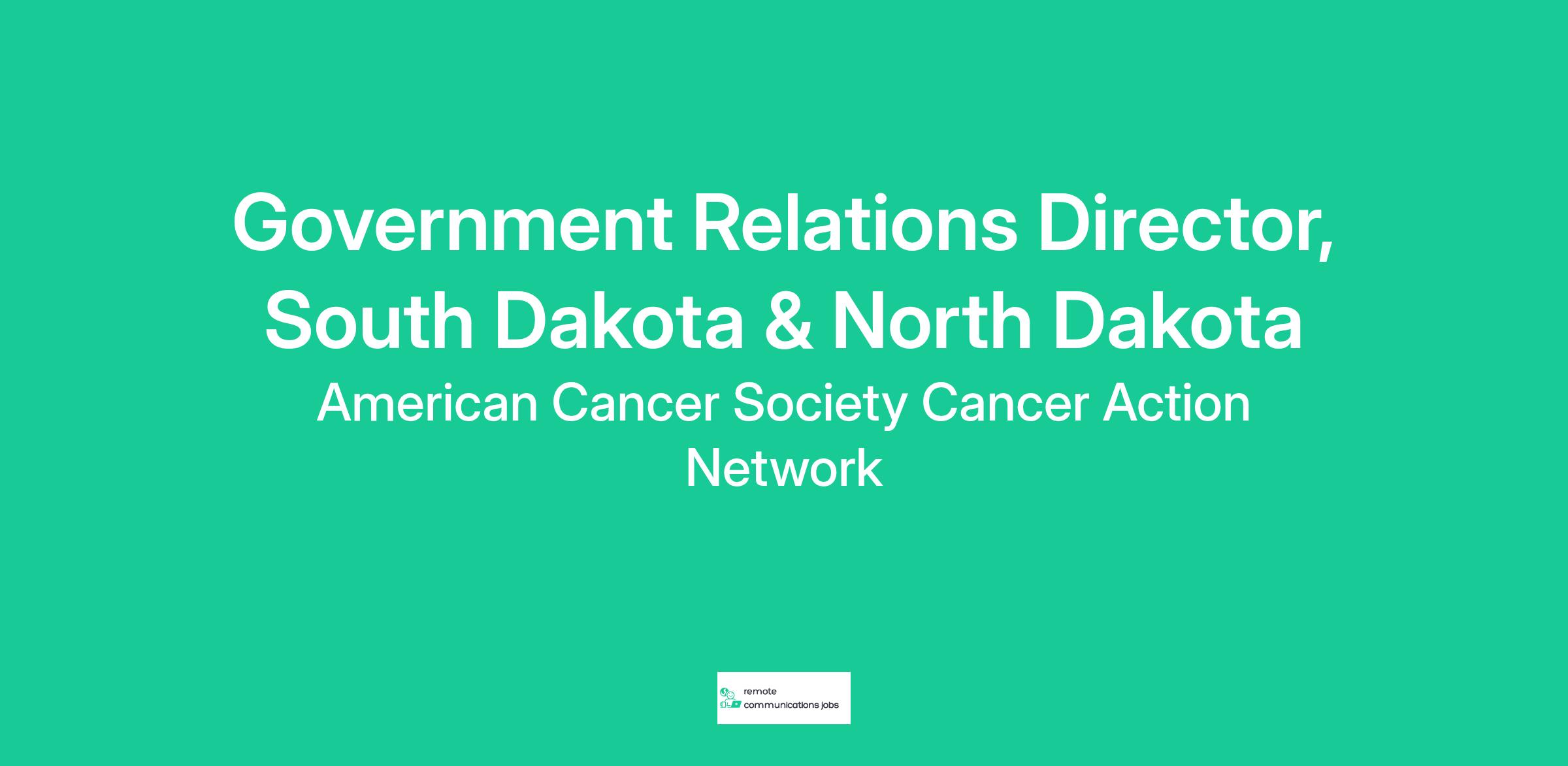 Build the power of the American Cancer Society Cancer Action Network (ACS CAN), the 501(c)4 advocacy organization of the American Cancer Society (ACS), in North & South Dakotas to implement successful public policy advocacy campaigns. Lead, drive, and execute a comprehensive direct lobbying and government relations leadership program in the state. This includes actively serving as an ambassador for the Society and ACS CAN to the state legislature, governor, state agencies, congressional offices, and donors, as well as representing the organization on coalitions. Lead the planning and implementation of issue campaigns in North & South Dakotas to achieve progress towards policy and appropriations successes, working with grassroots staff to execute the state's advocacy program, as well as with contract lobbyists, where applicable. Lead and drive work to achieve North & South Dakotasβ ACS CAN fundraising goal. Embrace diversity, equity, and inclusion in every aspect of the role. Model the organization's values and cultural beliefs. Comply with all relevant lobbying protocol, including lobbyist registration and reporting, adhering to state legal requirements, and all assigned administrative duties.