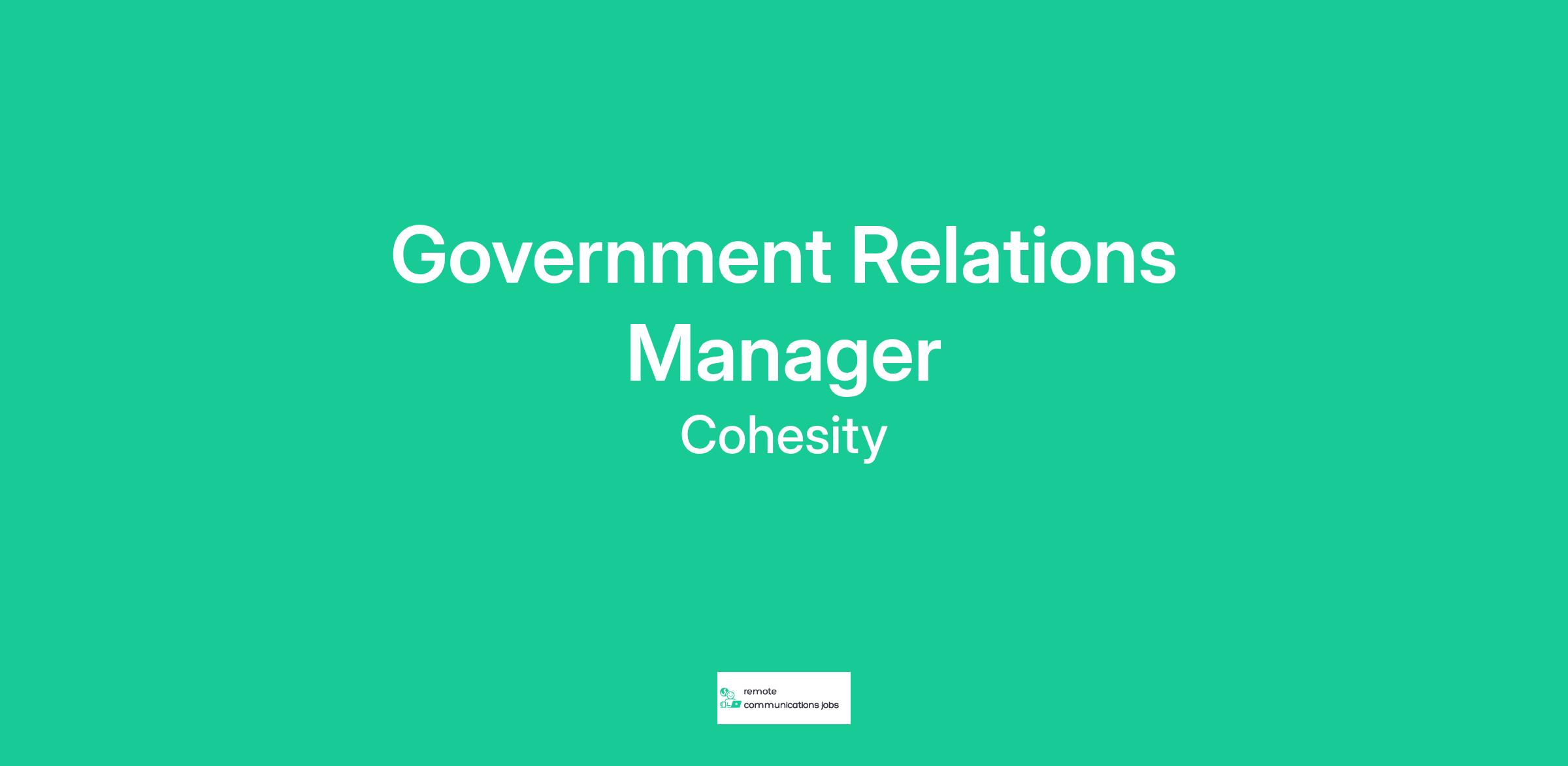 Cohesity is currently looking to hire a Government Relations Manager for its Government Relations group. The role will be based in Washington, DC.