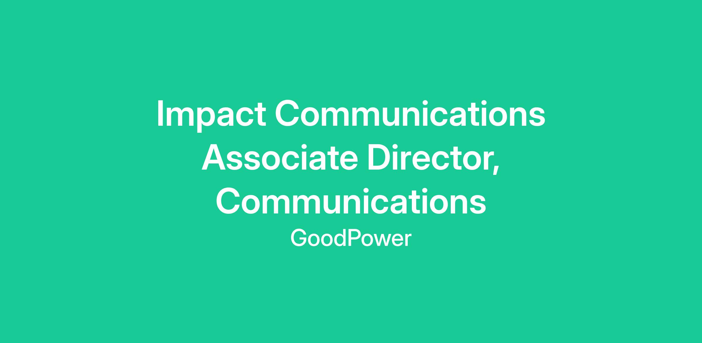 The Associate Director of Impact Communications seeks to advance GoodPower’s work to accelerate a renewable energy economy by ensuring that we are effectively communicating our wins to our network, funders, partners and the media. The Associate Director translates our work into compelling stories, data and proof points that deepens funder trust, attracts new resources and projects, and amplifies GoodPower’s influence in the field.