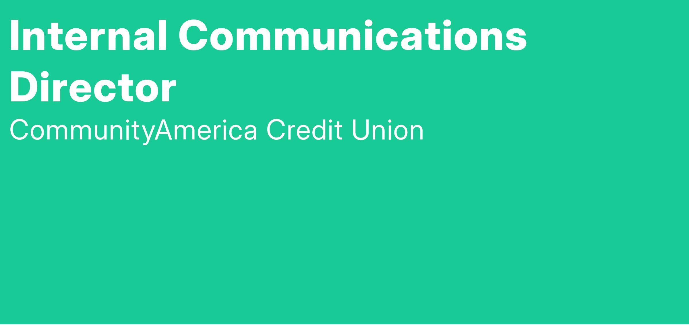 The Internal Communications Director manages CommunityAmerica’s internal communications program in all the markets served by the credit union. Working closely with leadership and HR, this position plans and executes strategic communications to inspire, inform, and engage credit union employees at all levels. As a partner to leadership and HR, the Internal Communications Director will help foster CommunityAmerica’s people helping people culture across the credit union in every market we serve.