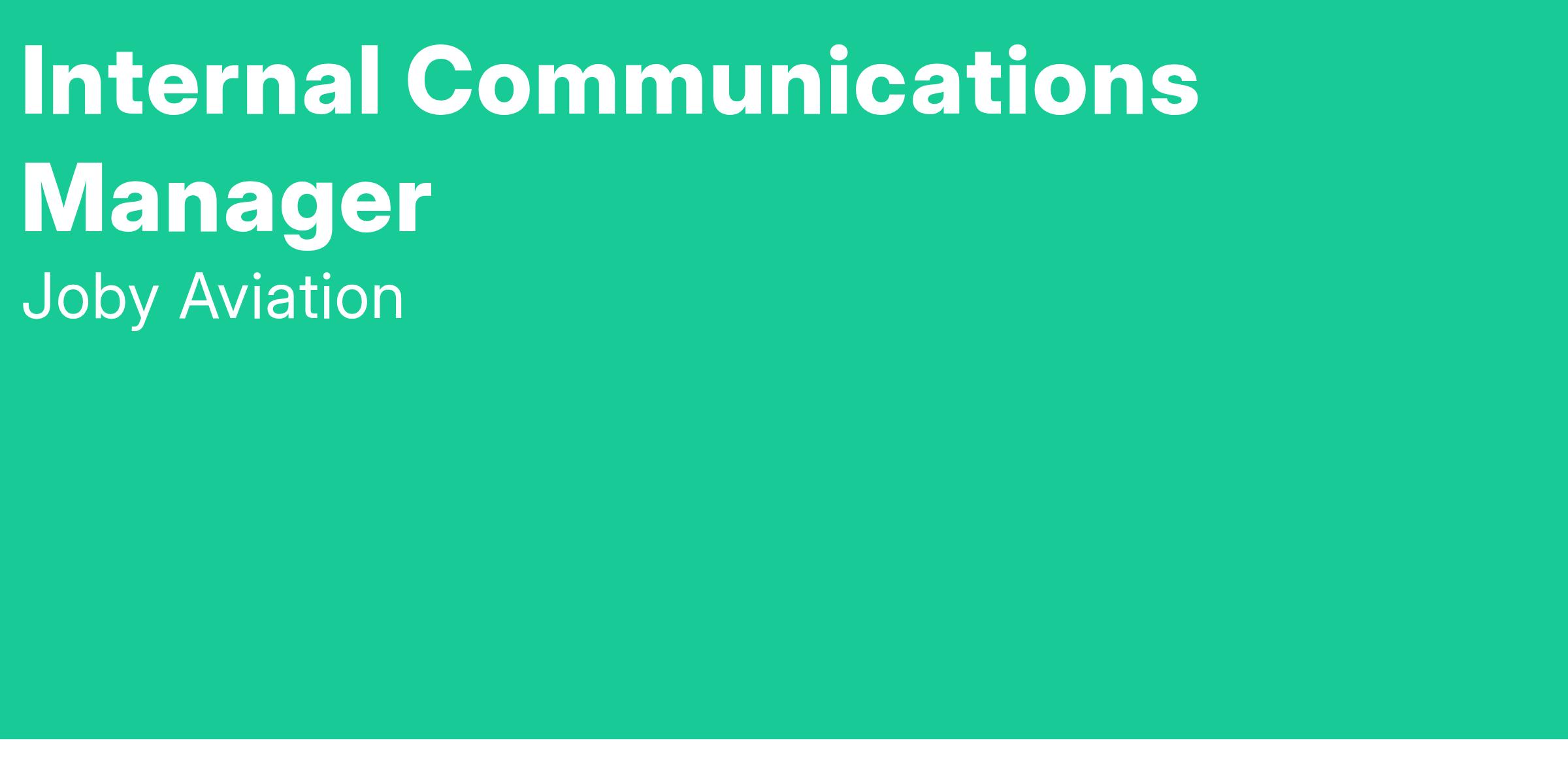 The Manager Internal Communications is responsible for crafting clear, engaging, and strategic communications that connect Joby Team Members with the company’s priorities and vision. This role reports into the Head of People and partners closely with the People leadership team, senior leaders, business partners, and MarComms to build and execute communication strategies that foster awareness, understanding, and pride in the company’s culture and mission. This role is onsite in Santa Cruz, California.