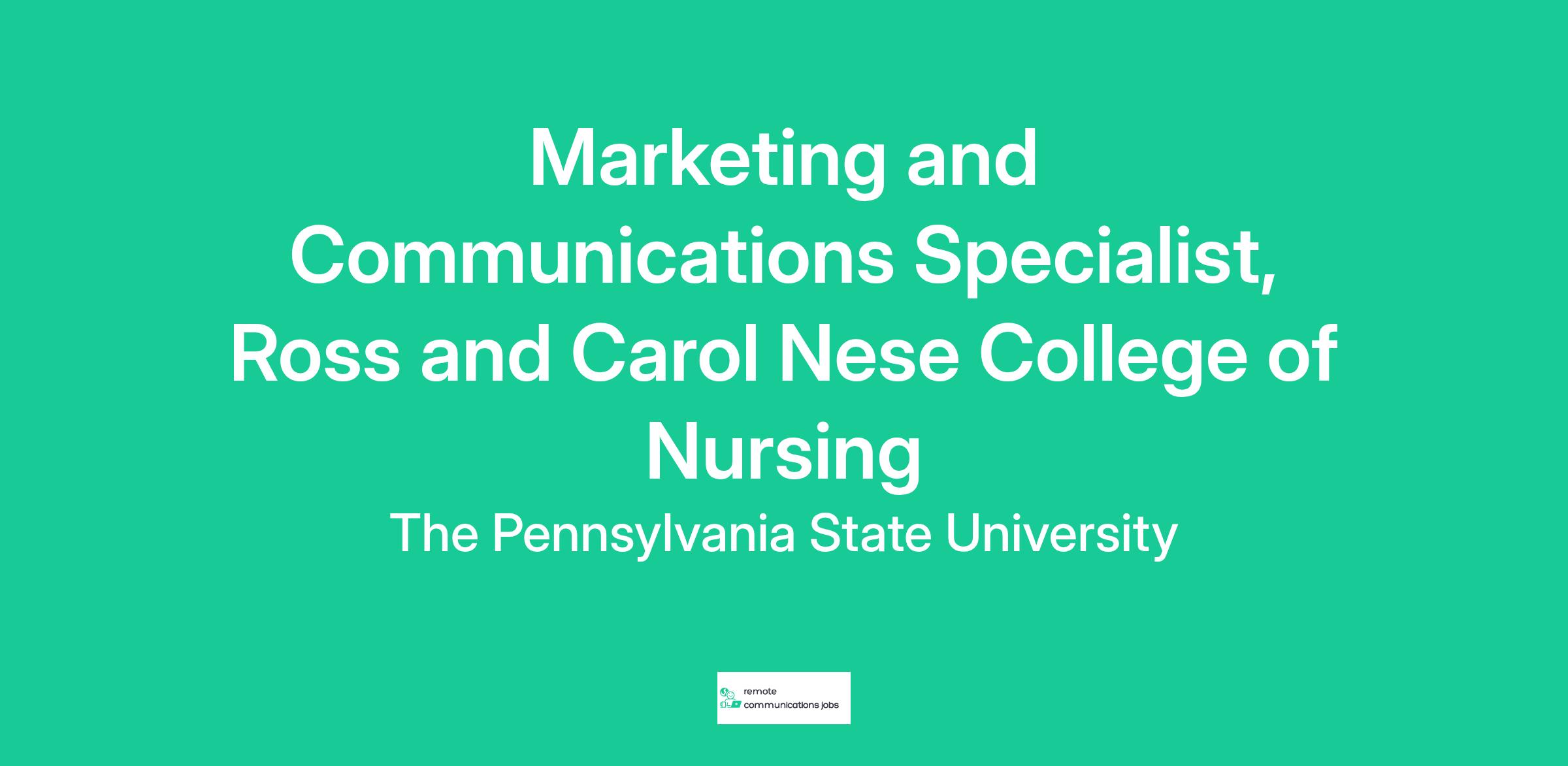 The Ross and Carol Nese College of Nursing seeks a creative, passionate, and skilled Marketing and Communications Specialist to join our Strategic Communications and Recruitment team.