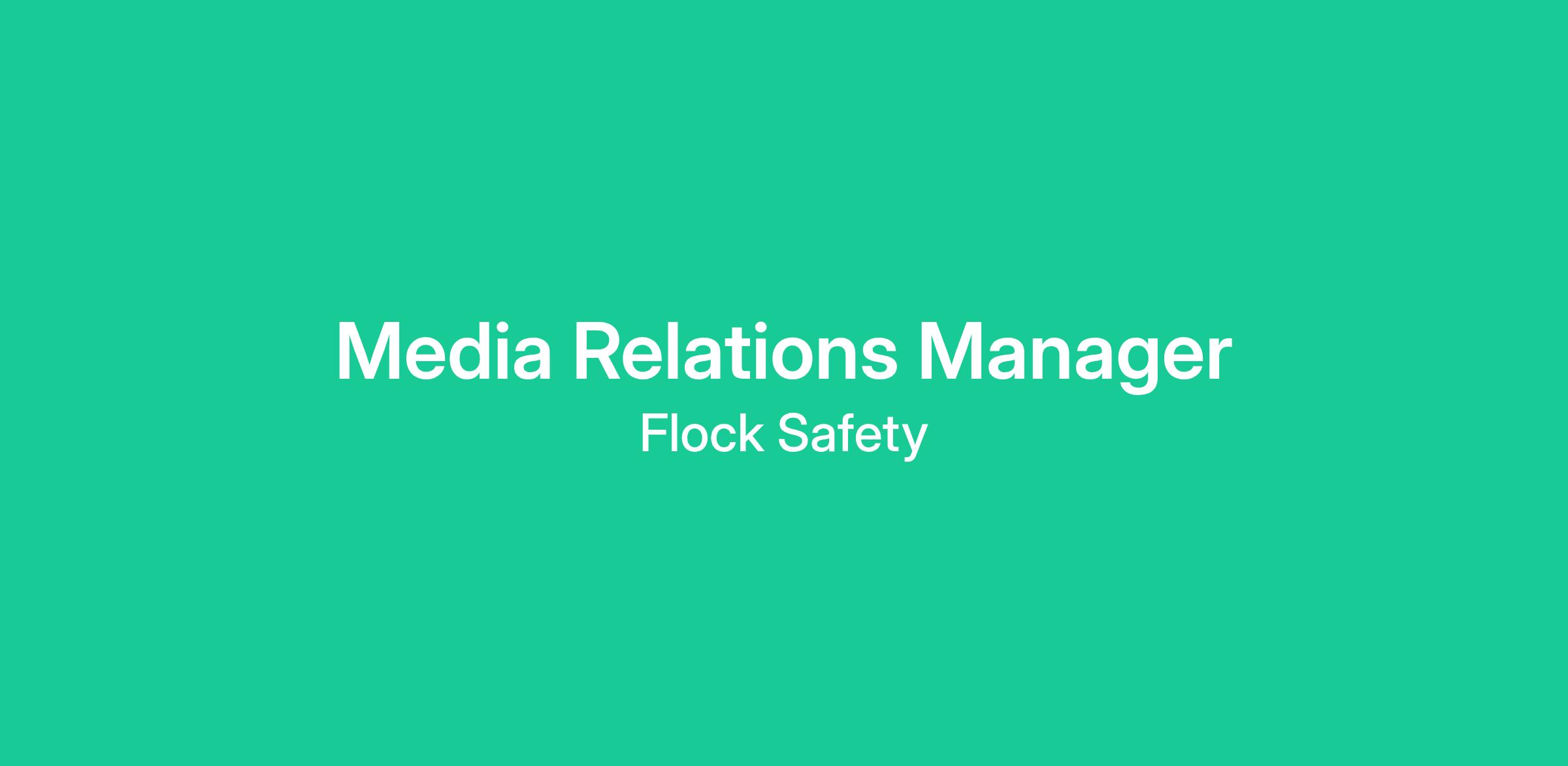 We are looking to hire a dynamic Media Relations Manager to join Flock Safety’s Communications team. In this role, you'll be an important part of a dynamic team, soliciting stories from customers, drafting press releases, pitching stories to news outlets, supporting press conferences, and building and maintaining relationships with reporters and Flock Safety’s public sector customers.