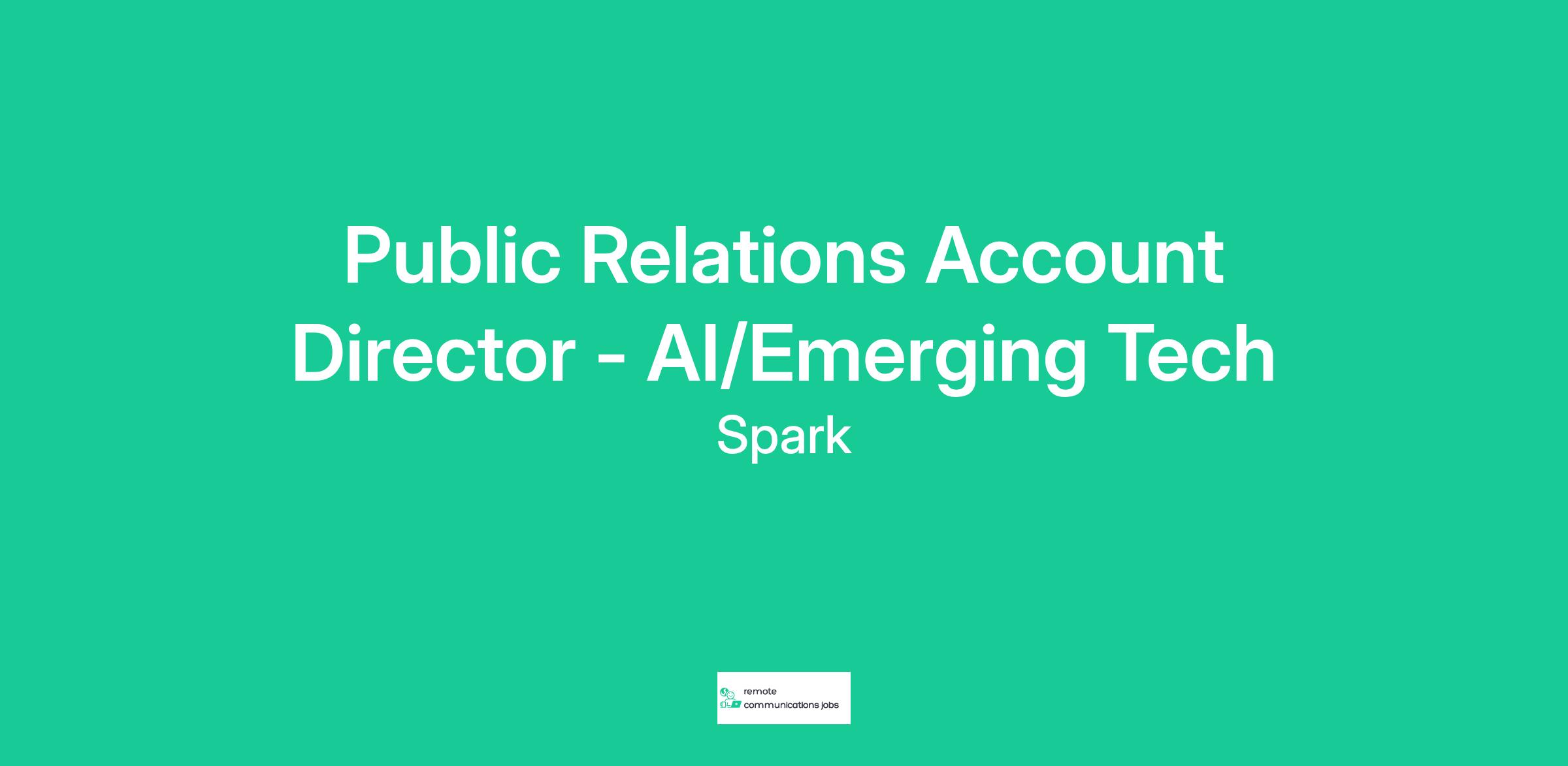 Spark Public Relations is an equal opportunity employer that values diversity. Spark PR does not discriminate on the basis of race, religion, color, sex, gender identity, sexual orientation, age, non-disqualifying physical or mental disability, national origin, veteran status or any other basis covered by appropriate law. All employment is decided on the basis of qualifications, merit and business need. Spark offers a competitive pay range of $100,000 to $130,000 per year for this position. The actual pay for the position will be determined based on, but not limited to, the candidate's location, relevant experience, qualifications, education, performance and revenue based metrics. This range reflects one of the many factors that are included in Spark’s total compensation package. Including, but not limited to, 95% insurance contribution from Spark, flexible PTO and a fully remote work environment.