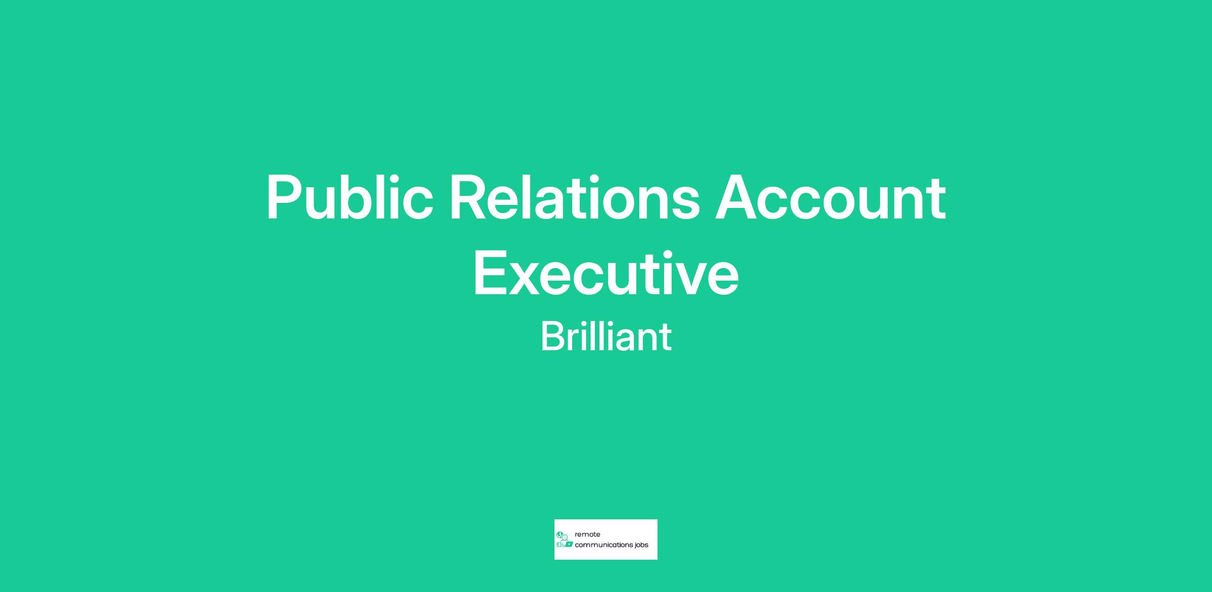 Brilliant, one of the most respected and rapidly growing agencies focused on family-oriented brands whose motto is “Work Hard - Play Hard - Laugh Hard”, seeks a Full-time Account Executive to help support the agency’s growing, award-winning full funnel marketing agency. The ideal candidate will have 3+ years of full-time agency experience in consumer products PR or integrated marketing.