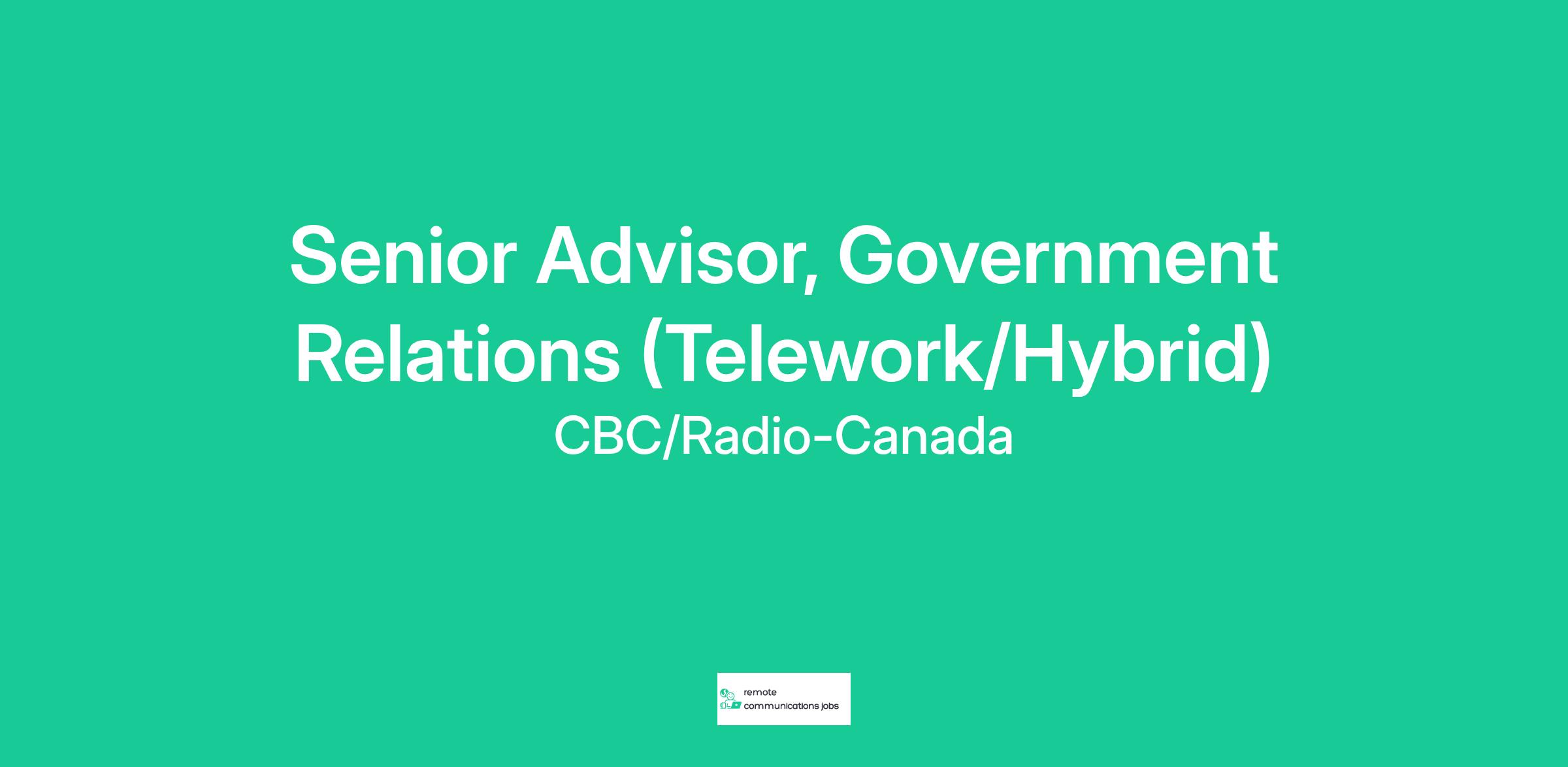 Are you a political thinker with a passion for public broadcasting and a deep understanding of the Canadian parliamentary process? CBC/Radio-Canada is currently recruiting for a Senior Advisor to help support our relationships with elected officials of all parties and raise awareness of the value of public broadcasting for Canadians.
