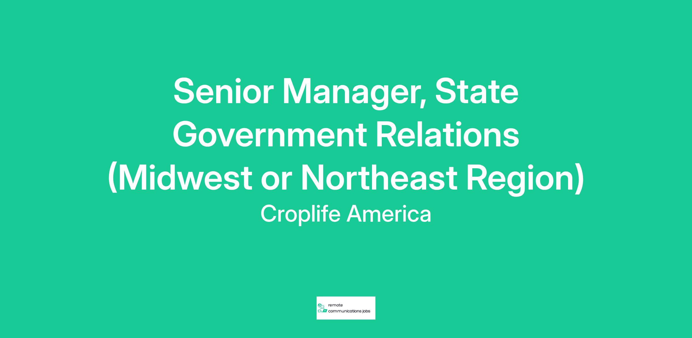 CropLife America (CLA), a trade association located in the Washington, D.C. area, is seeking a full-time Senior Manager of State Government Relations. The Senior Manager of State Government Relations, a key member of the state team, is responsible for representing the association on various state legislative, local, and regulatory matters. Job responsibilities include developing, implementing, and managing effective legislative and political strategies at the state and local levels in support of the organization’s priorities and objectives. The Senior Manager reports to the Vice President of Government Relations.