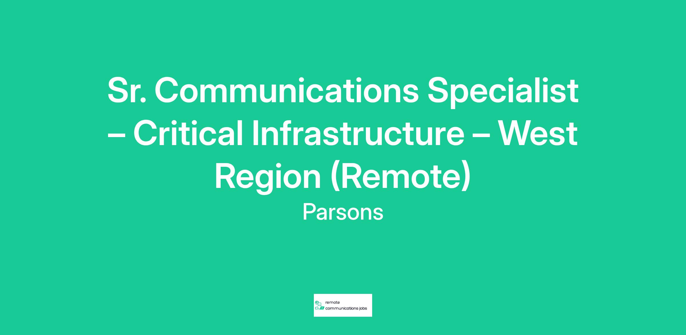 Parsons is looking for a strategic marketing and external communications lead focusing on Critical Infrastructure markets for the West Region to join our Corporate Affairs team.