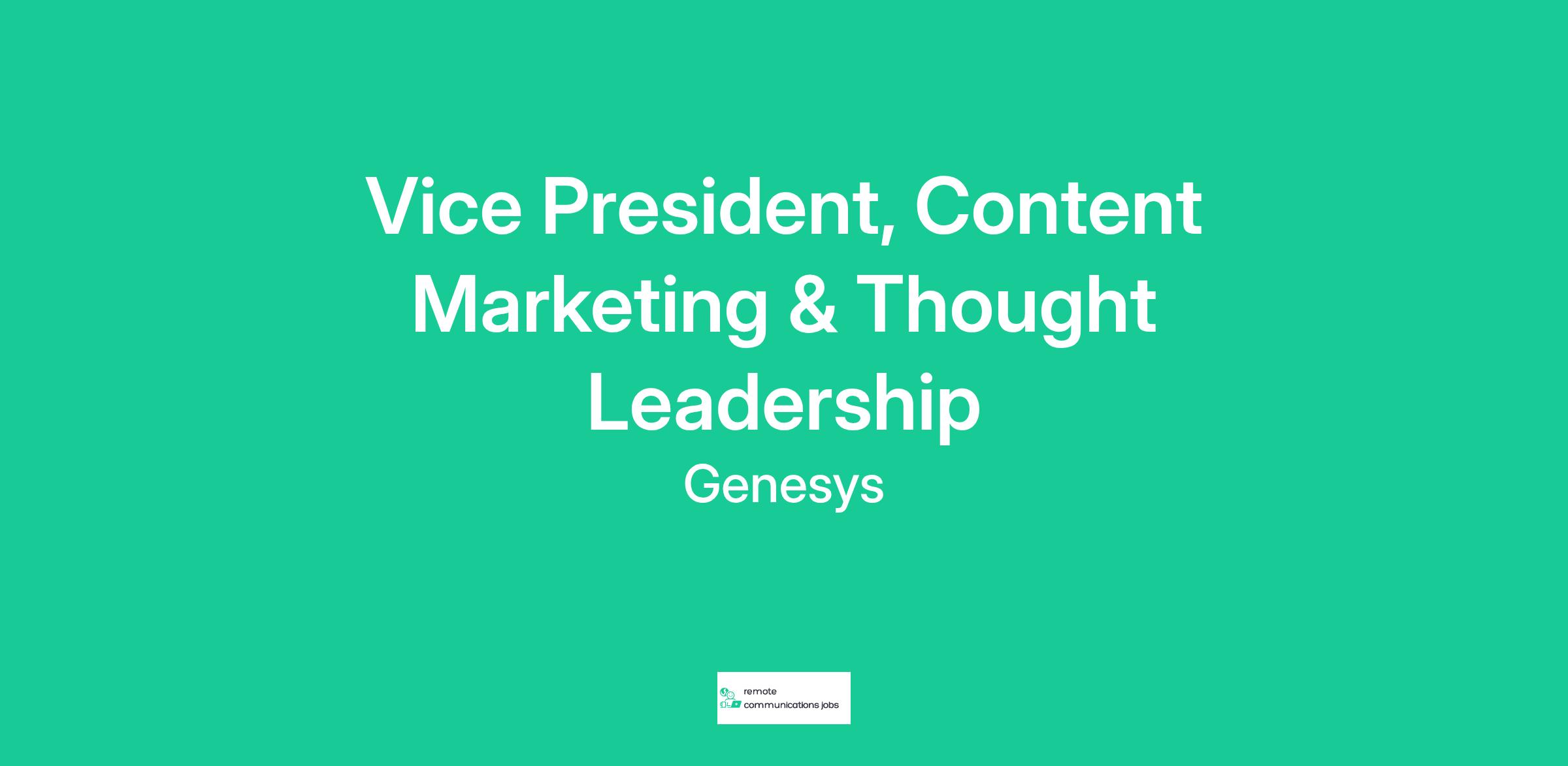 This is a strategic and creative leadership opportunity to guide the global content strategy for Genesys, a recognized leader in AI-powered experience orchestration. As Vice President, Content Marketing & Thought Leadership, you will develop and scale a world-class content engine that drives our go-to-market success, strengthens brand authority, and inspires global audiences. You will lead a team of talented storytellers and strategists to produce compelling content across multiple formats, including thought leadership, research, web, campaigns, digital media, event, product launch and regional marketing efforts. At Genesys, we are transforming the customer experience landscape with empathy, innovation, and global impact. Joining our team means becoming part of a culture that values collaboration, creativity, and purposeful storytelling that moves markets.
