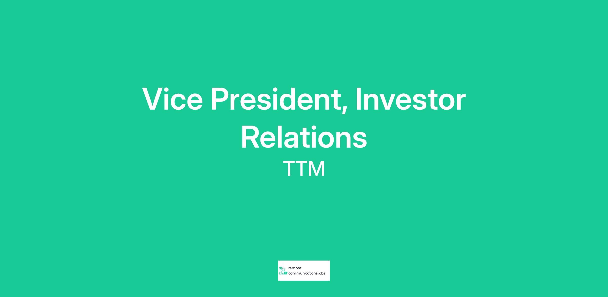 The ideal candidate for this role will be a strategic communicator who can articulate TTM's complex technology portfolio, competitive positioning, and growth strategy across defense and commercial markets. The Vice President, Investor Relations will play a critical role in building investor confidence, optimizing the company's valuation, and supporting capital markets activities.