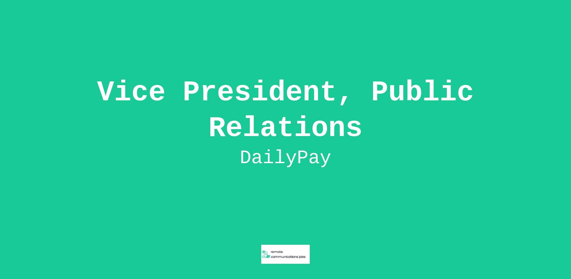 Are you a builder, a visionary, and a master of narrative? DailyPay is creating the world's next financial system by rewriting the invisible rules of money, starting with pay. We are seeking a Vice President of Public Relations to join our leadership team and serve as the architect of our external communications strategy as we prepare for a landmark phase in our company's history.